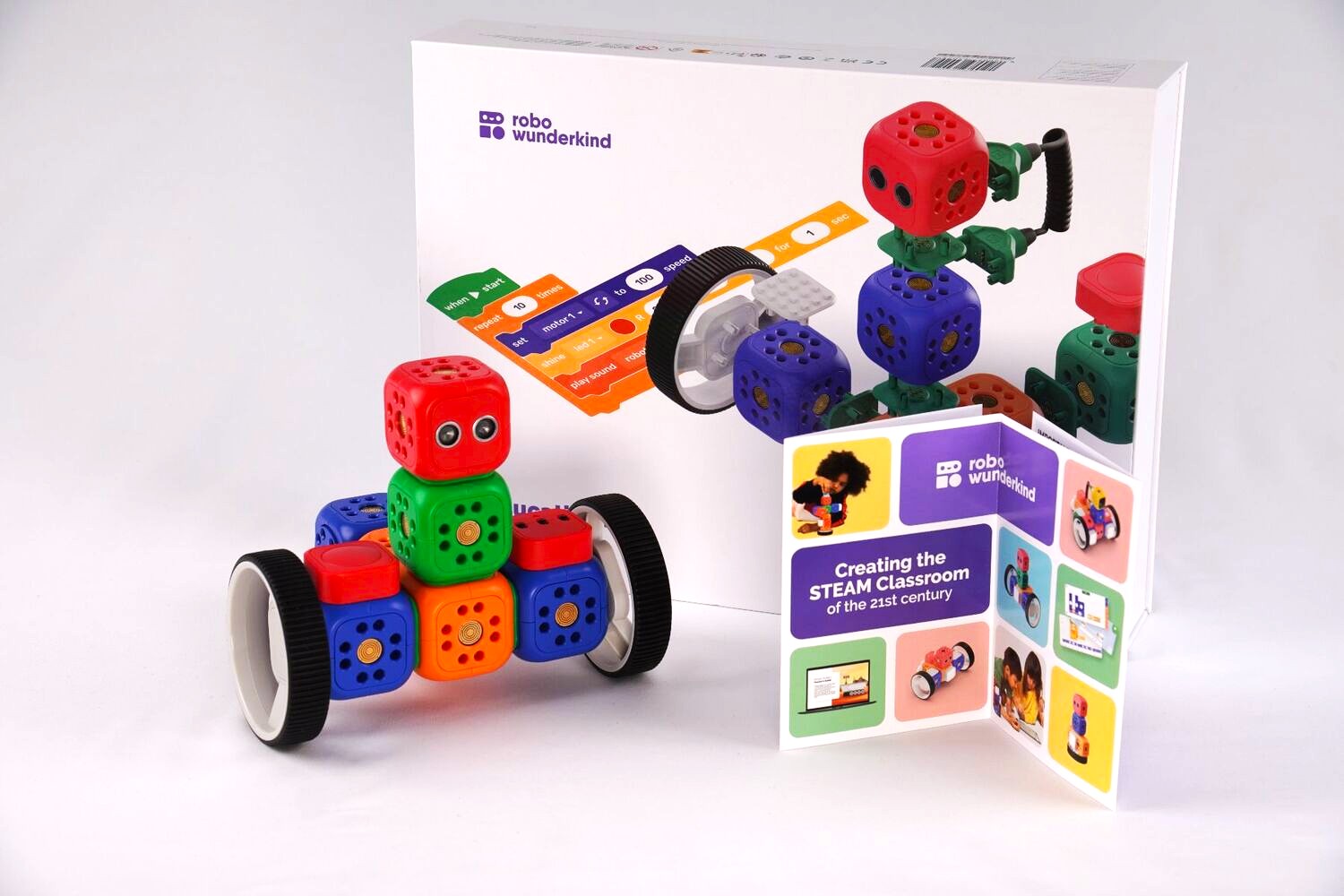 Intuitiv lernen und kinderleicht coden. Das Robo Wunderkind Education Kit ist für Kinder ab 5 Jahren geeignet. Die Programmierung der Blöcke erfolgt über 3 verschiedene Apps, die aufeinander aufbauen. Der Satz besteht aus 18 Kästen.
